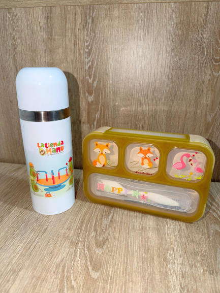 Kit Termo Térmico 380ml + Lonchera Dorada Liquidación + ENVÍO GRATIS